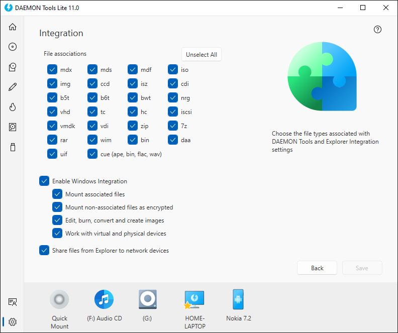 Windows Integration is an advanced feature that permits to access DAEMON Tools Lite features right from the contextual menu while in Explorer. To use this feature, go to the License tab, pick Windows. You can start the three-day Trial or Buy Windows Integration feature.